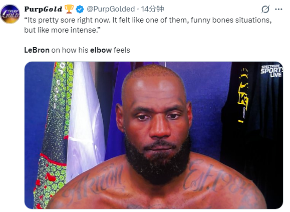 谈到自己的伤势,詹姆斯表示:现在感觉非常疼。就像是撞到了麻筋,但比那更严重。接下来的几天我会看看感觉如何,然后再做评估。